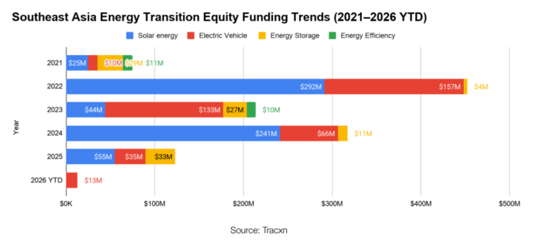Southeast Asia’s energy transition is being shaped by a strong tilt towards solar power and electric vehicles (EVs), which together captured nearly 90 percent of the region’s funding, highlighting both momentum and structural gaps in the ecosystem, according to a report by Tracxn.